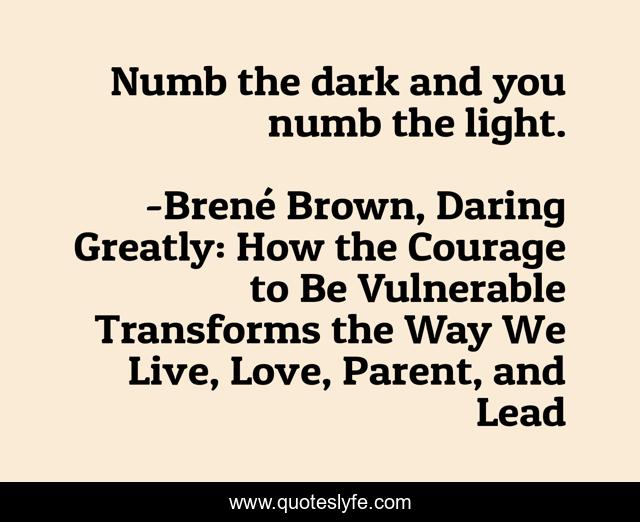"Brené Brown, Daring Greatly: How the Courage to Be Vulnerable Transforms the Way We Live, Love, Parent, and Lead Quotes." Quoteslyfe.com, 2025. Fri. 05 Dec. 2025. <https://www.quoteslyfe.com/quote/Numb-the-dark-and-you-numb-the-119069>.