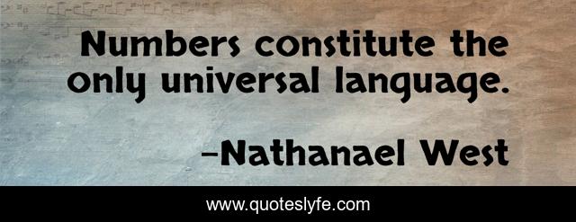 This page presents the quote "Numbers constitute the only universal language.". Author of this quote is Nathanael West. This quote is about words, language,.