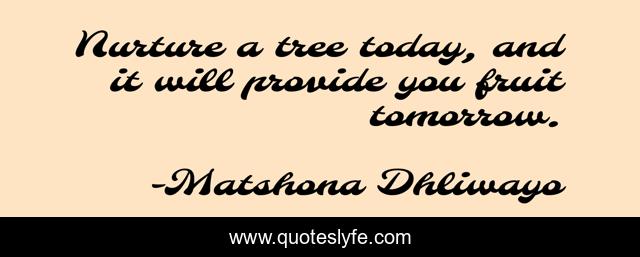 "Matshona Dhliwayo Quotes." Quoteslyfe.com, 2025. Sat. 06 Dec. 2025. <https://www.quoteslyfe.com/quote/Nurture-a-tree-today-and-it-will-98428>.