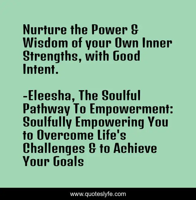 "Eleesha, The Soulful Pathway To Empowerment: Soulfully Empowering You to Overcome Life's Challenges & to Achieve Your Goals Quotes." Quoteslyfe.com, 2025. Sun. 07 Dec. 2025. <https://www.quoteslyfe.com/quote/Nurture-the-Power-Wisdom-of-your-Own-205069>.