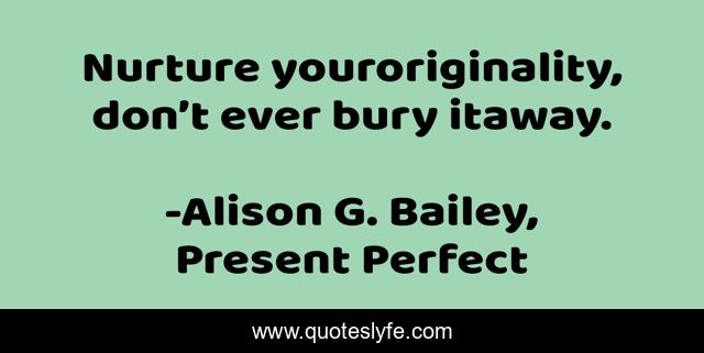 "Alison G. Bailey, Present Perfect Quotes." Quoteslyfe.com, 2025. Fri. 05 Dec. 2025. <https://www.quoteslyfe.com/quote/Nurture-youroriginality-don-t-ever-bury-itaway-106687>.