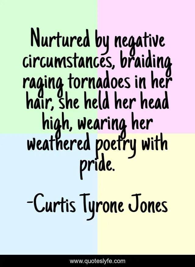 "Curtis Tyrone Jones Quotes." Quoteslyfe.com, 2025. Fri. 05 Dec. 2025. <https://www.quoteslyfe.com/quote/Nurtured-by-negative-circumstances-braiding-raging-tornadoes-147524>.
