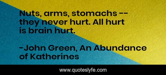 "John Green, An Abundance of Katherines Quotes." Quoteslyfe.com, 2025. Tue. 09 Dec. 2025. <https://www.quoteslyfe.com/quote/Nuts-arms-stomachs-they-never-hurt-All-178952>.