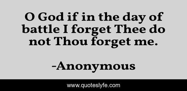 This page presents the quote "O God if in the day of battle I forget Thee do not Thou forget me.". Author of this quote is Anonymous. .