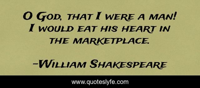 This page presents the quote "O God, that I were a man! I would eat his heart in the marketplace.". Author of this quote is William Shakespeare. This quote is about shakespeare, feminism, gender-roles,.