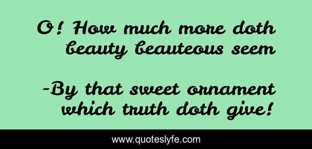 "By that sweet ornament which truth doth give! Quotes." Quoteslyfe.com, 2025. Sat. 06 Dec. 2025. <https://www.quoteslyfe.com/quote/O-How-much-more-doth-beauty-beauteous-60985>.