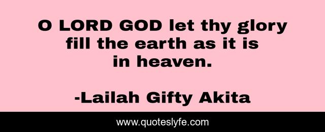 This page presents the quote "O LORD GOD let thy glory fill the earth as it is in heaven.". Author of this quote is Lailah Gifty Akita. This quote is about faith, intercessory-prayer, christian, god, religion, prayer, earth,.