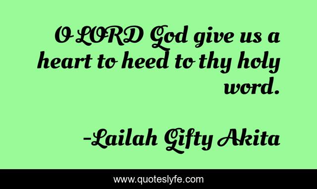 This page presents the quote "O LORD God give us a heart to heed to thy holy word.". Author of this quote is Lailah Gifty Akita. This quote is about faith, god, obedience-to-god, christianity, religion, holy-scriptures, praying,.
