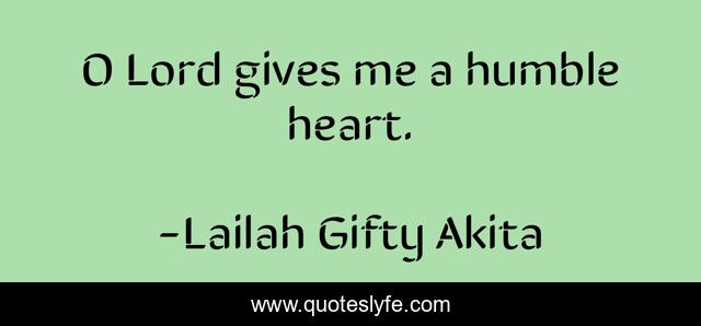 This page presents the quote "O Lord gives me a humble heart.". Author of this quote is Lailah Gifty Akita. This quote is about humble, lailah-gifty-akita-affirmations, humility, prayer,.