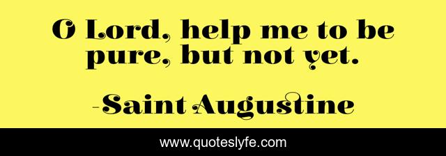 This page presents the quote "O Lord, help me to be pure, but not yet.". Author of this quote is Saint Augustine. This quote is about me, help, pure,.