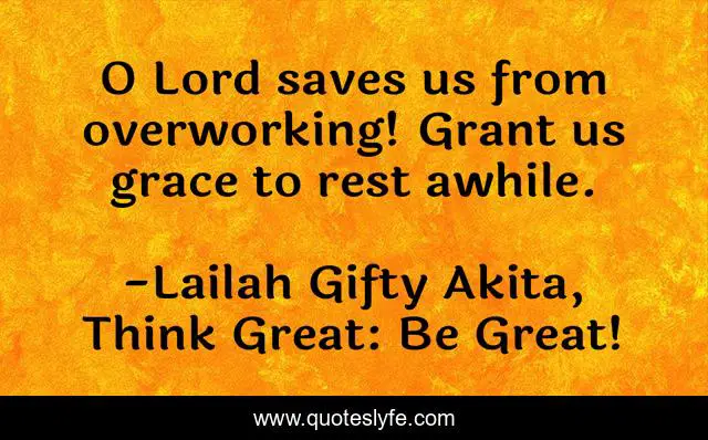 "Lailah Gifty Akita, Think Great: Be Great! Quotes." Quoteslyfe.com, 2025. Fri. 05 Dec. 2025. <https://www.quoteslyfe.com/quote/O-Lord-saves-us-from-overworking-Grant-114911>.