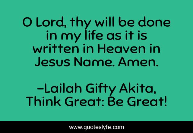 "Lailah Gifty Akita, Think Great: Be Great! Quotes." Quoteslyfe.com, 2025. Sun. 07 Dec. 2025. <https://www.quoteslyfe.com/quote/O-Lord-thy-will-be-done-in-85131>.