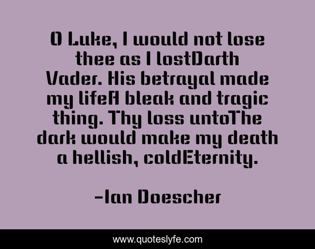 "Ian Doescher Quotes." Quoteslyfe.com, 2025. Fri. 05 Dec. 2025. <https://www.quoteslyfe.com/quote/O-Luke-I-would-not-lose-thee-239268>.