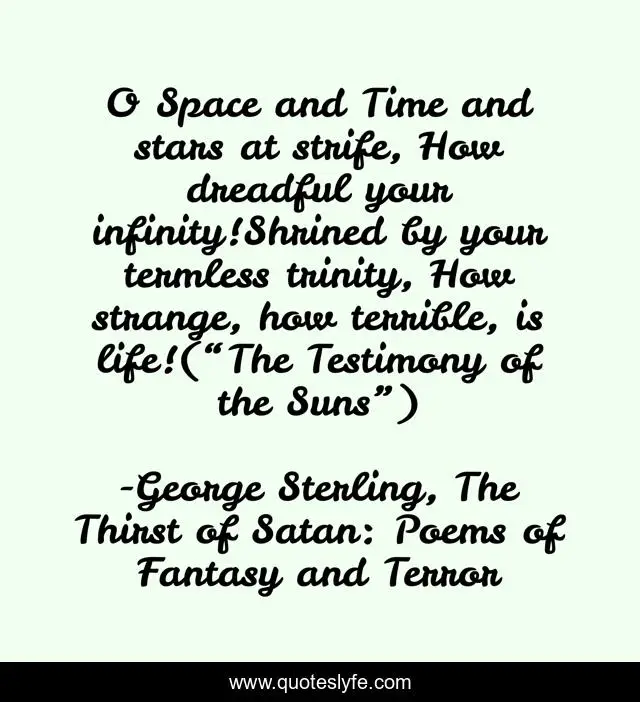 "George Sterling, The Thirst of Satan: Poems of Fantasy and Terror Quotes." Quoteslyfe.com, 2025. Sat. 06 Dec. 2025. <https://www.quoteslyfe.com/quote/O-Space-and-Time-and-stars-at-38686>.