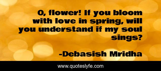 This page presents the quote "O, flower! If you bloom with love in spring, will you understand if my soul sings?". Author of this quote is Debasish Mridha. This quote is about poem, flower, debasish-mridha, philosophy, soul-sings, poetry, love-in-spring, quotes, inspirational,.