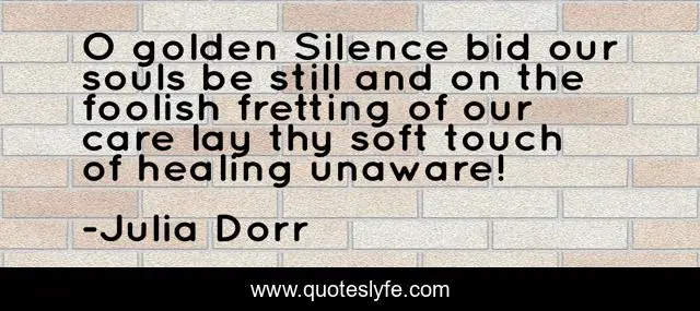 "Julia Dorr Quotes." Quoteslyfe.com, 2025. Sat. 06 Dec. 2025. <https://www.quoteslyfe.com/quote/O-golden-Silence-bid-our-souls-be-259571>.