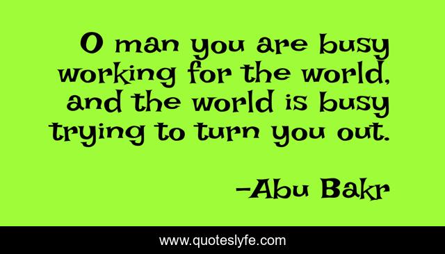 This page presents the quote "O man you are busy working for the world, and the world is busy trying to turn you out.". Author of this quote is Abu Bakr. This quote is about world, busy, man,.
