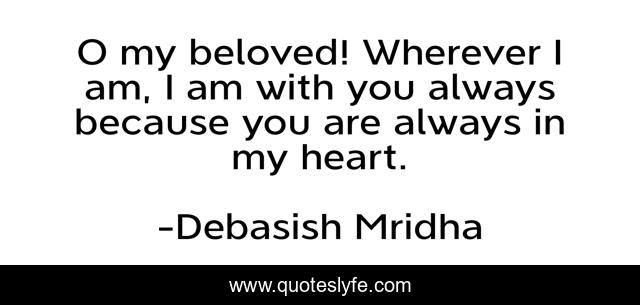 This page presents the quote "O my beloved! Wherever I am, I am with you always because you are always in my heart.". Author of this quote is Debasish Mridha. This quote is about love, inspirational, philosophy, debasish-mridha, valentine, quotes, always-in-my-heart, beloved, enthusiasm,.