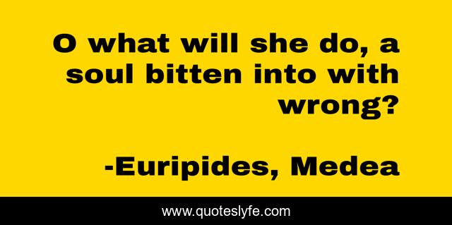 This page presents the quote "O what will she do, a soul bitten into with wrong?". Author of this quote is Euripides, Medea. This quote is about love, betrayal, soul, passion, sincerity, trauma, affection,.
