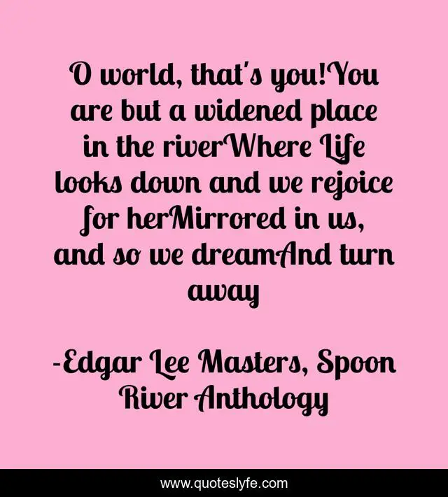 "Edgar Lee Masters, Spoon River Anthology Quotes." Quoteslyfe.com, 2025. Sat. 06 Dec. 2025. <https://www.quoteslyfe.com/quote/O-world-that-s-you-You-are-54107>.