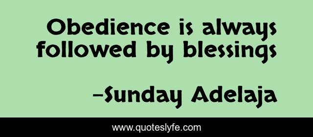 This page presents the quote "Obedience is always followed by blessings". Author of this quote is Sunday Adelaja. This quote is about blessings, followed, obedience,.