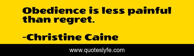 This page presents the quote "Obedience is less painful than regret.". Author of this quote is Christine Caine. This quote is about regret, obedience, christine-caine,.