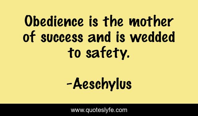 This page presents the quote "Obedience is the mother of success and is wedded to safety.". Author of this quote is Aeschylus. This quote is about safety, obedience, mother,.