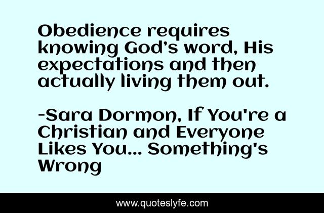 "Sara Dormon, If You're a Christian and Everyone Likes You... Something's Wrong Quotes." Quoteslyfe.com, 2025. Sun. 07 Dec. 2025. <https://www.quoteslyfe.com/quote/Obedience-requires-knowing-God-s-word-His-169023>.