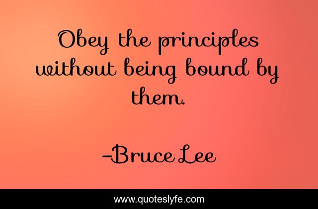 This page presents the quote "Obey the principles without being bound by them.". Author of this quote is Bruce Lee. .
