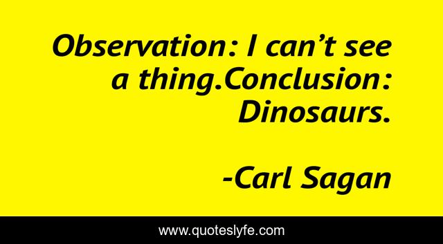 This page presents the quote "Observation: I can’t see a thing.Conclusion: Dinosaurs.". Author of this quote is Carl Sagan. This quote is about science, venus, humor, space,.