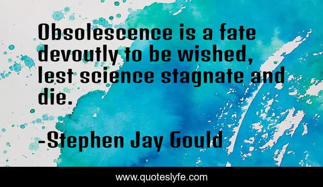 This page presents the quote "Obsolescence is a fate devoutly to be wished, lest science stagnate and die.". Author of this quote is Stephen Jay Gould. This quote is about radical-science, biology, evolution,.