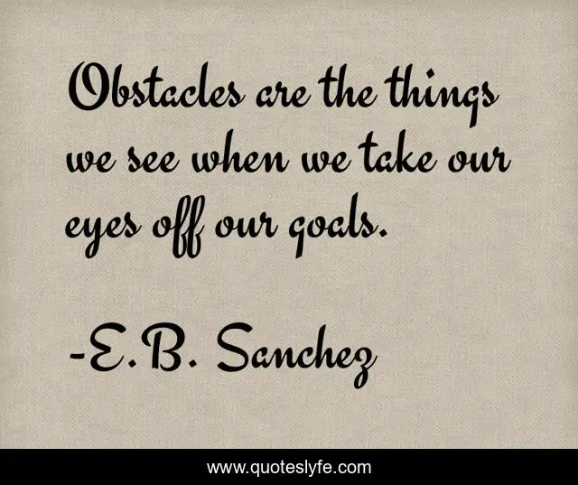 This page presents the quote "Obstacles are the things we see when we take our eyes off our goals.". Author of this quote is E.B. Sanchez. This quote is about positive, confidence, motivational, optimistic,.