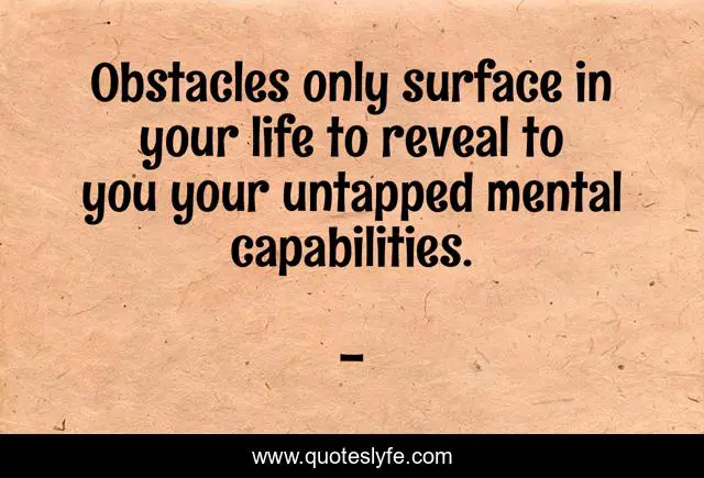 This page presents the quote "Obstacles only surface in your life to reveal to you your untapped mental capabilities.". Author of this quote is . This quote is about edmond-mbiaka, obstacles, capability, your-life, obstacle, your-untapped-potential, mental-capabilities,.