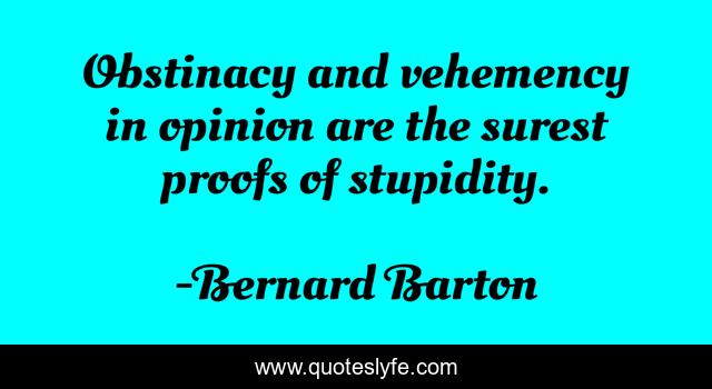 This page presents the quote "Obstinacy and vehemency in opinion are the surest proofs of stupidity.". Author of this quote is Bernard Barton. .