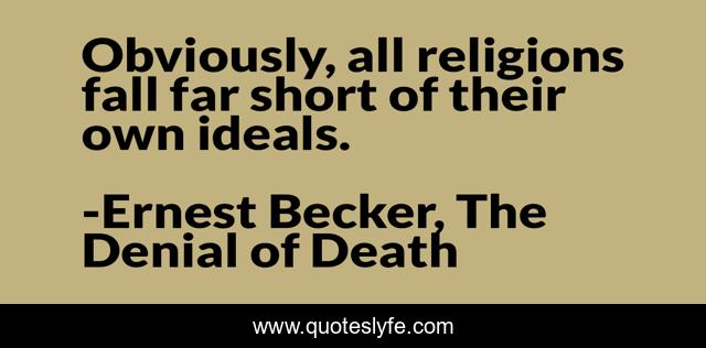 This page presents the quote "Obviously, all religions fall far short of their own ideals.". Author of this quote is Ernest Becker, The Denial of Death. This quote is about existentialism, religion,.
