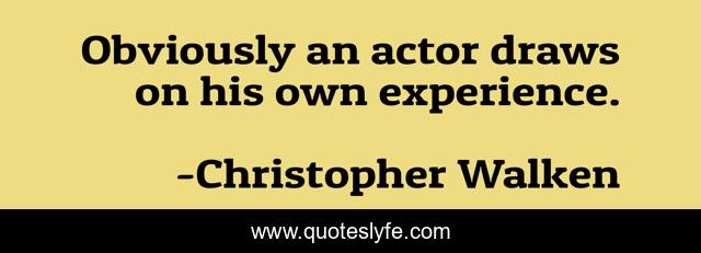 This page presents the quote "Obviously an actor draws on his own experience.". Author of this quote is Christopher Walken. This quote is about own, his, actor,.
