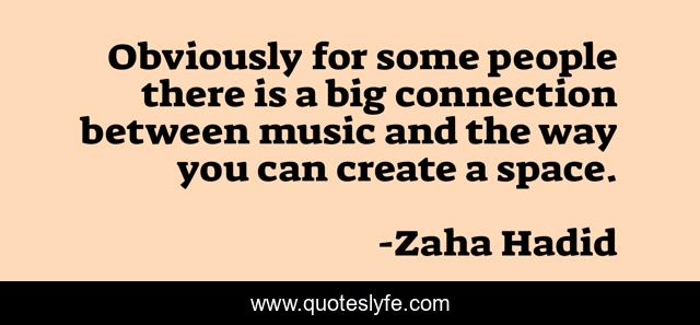 This page presents the quote "Obviously for some people there is a big connection between music and the way you can create a space.". Author of this quote is Zaha Hadid. This quote is about music, people,.