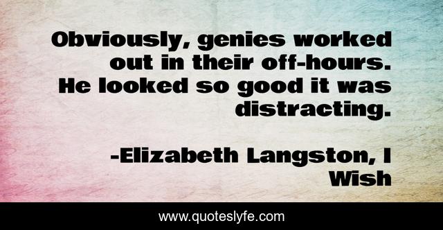 This page presents the quote "Obviously, genies worked out in their off-hours. He looked so good it was distracting.". Author of this quote is Elizabeth Langston, I Wish. This quote is about attraction, genie,.