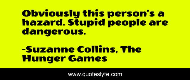 This page presents the quote "Obviously this person's a hazard. Stupid people are dangerous.". Author of this quote is Suzanne Collins, The Hunger Games. .