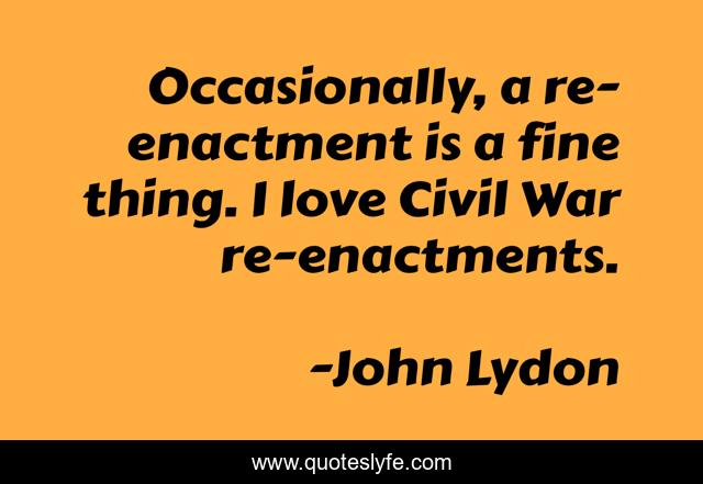 This page presents the quote "Occasionally, a re-enactment is a fine thing. I love Civil War re-enactments.". Author of this quote is John Lydon. This quote is about love, fine, civil war, affection,.