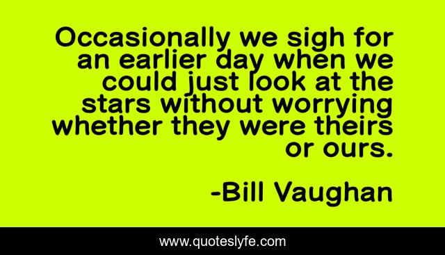 This page presents the quote "Occasionally we sigh for an earlier day when we could just look at the stars without worrying whether they were theirs or ours.". Author of this quote is Bill Vaughan. .