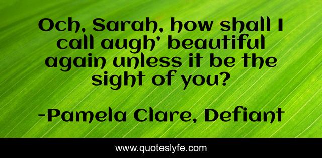 This page presents the quote "Och, Sarah, how shall I call augh’ beautiful again unless it be the sight of you?". Author of this quote is Pamela Clare, Defiant. This quote is about beautiful, beauty, defiant,.