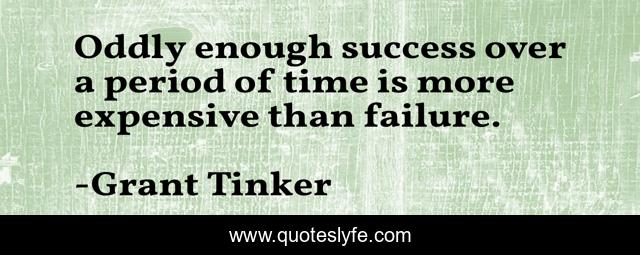 This page presents the quote "Oddly enough success over a period of time is more expensive than failure.". Author of this quote is Grant Tinker. .