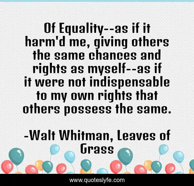 "Walt Whitman, Leaves of Grass Quotes." Quoteslyfe.com, 2025. Fri. 05 Dec. 2025. <https://www.quoteslyfe.com/quote/Of-Equality-as-if-it-harm-d-7761>.