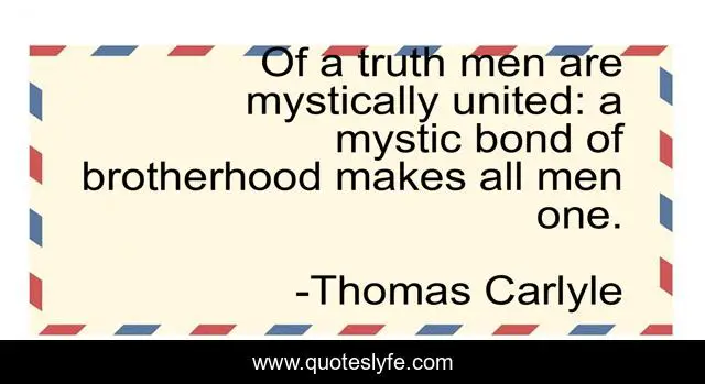 This page presents the quote "Of a truth men are mystically united: a mystic bond of brotherhood makes all men one.". Author of this quote is Thomas Carlyle. .