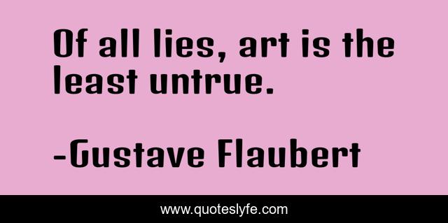 This page presents the quote "Of all lies, art is the least untrue.". Author of this quote is Gustave Flaubert. This quote is about lies, untrue,.