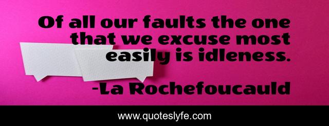 This page presents the quote "Of all our faults the one that we excuse most easily is idleness.". Author of this quote is La Rochefoucauld. .
