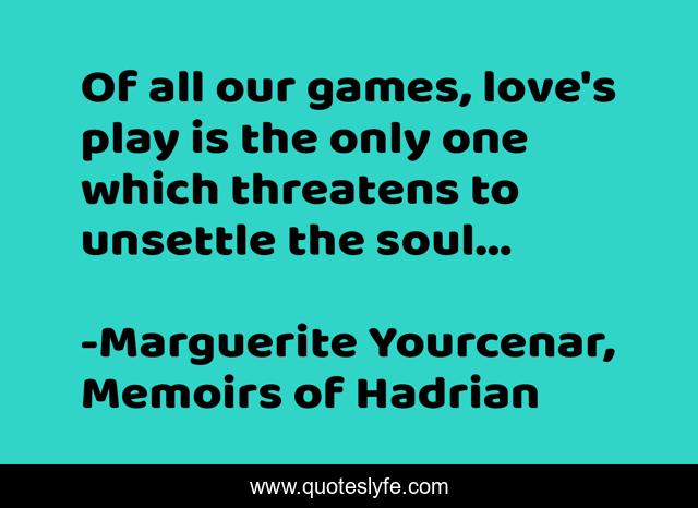 "Marguerite Yourcenar, Memoirs of Hadrian Quotes." Quoteslyfe.com, 2025. Sat. 06 Dec. 2025. <https://www.quoteslyfe.com/quote/Of-all-our-games-love-s-play-501>.