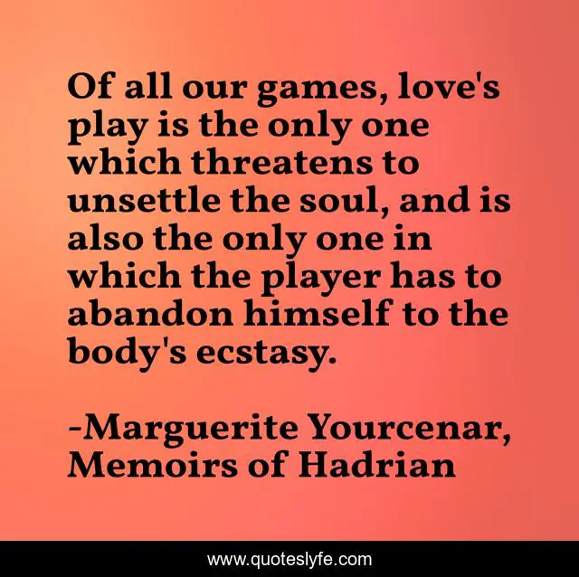 "Marguerite Yourcenar, Memoirs of Hadrian Quotes." Quoteslyfe.com, 2025. Sun. 07 Dec. 2025. <https://www.quoteslyfe.com/quote/Of-all-our-games-love-s-play-63001>.