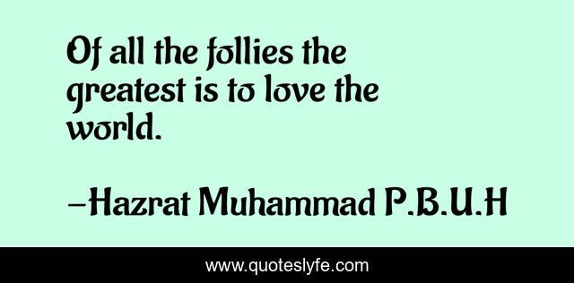 This page presents the quote "Of all the follies the greatest is to love the world.". Author of this quote is Hazrat Muhammad P.B.U.H. This quote is about world, mistakes, love, affection,.